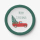 Frohe Weihnachtswagen mit Weihnachtsbaum rot Pappteller
