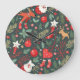 Ein festliches Urlaubsmuster mit Rentieren, Ziergegenständen und saisonaler Vegetation auf dunklem Hintergrund. Ideal, um die Weihnachtsdekoration mit einer Touch Lustik zu versehen.