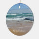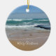 Frohe Weihnachtsbäume Runde Keramik Ornament präsentiert die bezaubernden blauen Gewässer der Küste Melbourne in Australien. "Frohe Weihnachten" ist in stilvollen modernen weißen Schriften, die Sie anpassen können, um Ihre eigenen Gruß, Namen oder Familie Monogramm. Dieses weiße Porzellanschmuck ist in verschiedenen Formen erhältlich, die Sie nach Belieben anpassen können. Dies wird auf jedem Weihnachtsbaum atemberaubend aussehen, oder als Geschenk für jemanden Besonderes. Ein Strang aus goldenem Faden macht es leicht zu hängen.