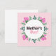 Frohen Muttertag Flachkarte mit rosa Tulpen, weißen kleinen Blumen und grünen Blättern verziert.