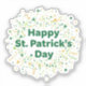 Einfach, festlich und voller Freude! Dieser klassische "Frohe St. Patrick's Day"-Sticker zeigt eine kühne Typografie, umgeben von einer Feier aus grünem und goldenem Konfetti.