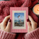 Benutzerdefinierte Valentinskarte mit Foto, gestreiftem Hintergrund und sauberem, modernem Design.