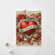 Schöne Valentinstagskarte mit farbenfrohem rotem Herzen, Blumen und Bändern. Frohen Valentinstag!