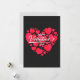 Ein lebendiges, animiertes Grußkartendesign erscheint und zeigt ein Herz, das mit kleineren Herzen in verschiedenen Rottönen gefüllt ist. Die Kamera führt einen sanften Zoom aus, wobei die komplizierten Details der Herzen betont werden. Während sie näher kommt, erscheint der Text "HAPPY VALENTINE'S DAY" elegant in einer fließenden Schrift und leuchtet sanft vor dem dunklen Hintergrund. Die Szene strahlt Wärme und Zuneigung aus, wobei ein subtiler Schimmer-Effekt die romantische Stimmung verstärkt.