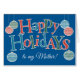 Eine lustige, textbasierte Happy Holidays Card für eine Mutter, mit Ornamenten und Lettern, gefüllt mit roten, blauen und grünen Chevronen und Polka-Punkten, Kontur in Weiß auf einem hellblauen Hintergrund. Für den Fall, dass Sie keine Karte für den gewünschten Empfänger finden können, gibt es auch eine benutzerdefinierte Vorderkarte mit diesem Design.