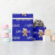 White HAPPY HOLIDAYS Text mit Lebkuchenmännern und Schneeflocken auf einem hellblauen Hintergrund. Text kann bearbeitet werden. Die Hintergrundfarbe kann geändert werden.