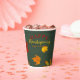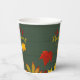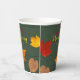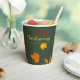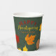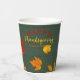 Personalisiertes Erntedank Papier Becher Design mit dem Text "Happy Thanksgiving" auf einem grünen Holzboden mit farbenfroher Blattfarbe geschrieben. Der Text ist vollständig anpassbar. Um es zu ändern, verwenden Sie die Option Personalize. Weitere Änderungen, z. B. Änderungen am Schriftart, am Schriftart oder am Textlayout, können Sie mit der Option Design bearbeiten durchführen.