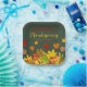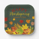 Personalisiertes Erntedank-Papierplattendesign mit dem Text "Glückliches Erntedankfest" auf grünem Holzboden mit farbenfroher Blattfarbe. Der Text ist vollständig anpassbar. Um es zu ändern, verwenden Sie die Option Personalize. Weitere Änderungen, z. B. Änderungen am Schriftart, am Schriftart oder am Textlayout, können Sie mit der Option Design bearbeiten durchführen.