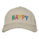 Das ist eine lustige, farbenfrohe Baseballkappe mit dem Wort HAPPY in großen bunten Stickereibriefen! Es wird eine coole und fröhliche Weihnachtsgeschenkidee für jemanden, den Sie Liebe!
