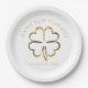 Frohes neues Jahr 2023 oder Ihre Text-Vierblättriges Kleeblatt, Imitate Gold Clover, Elegant Neujahr Party oder Viel Glück Occasion Paper Teller, können Sie ändern oder löschen Sie alle Text