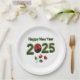 Festliche Teller zum Feiern "Happy New Year 2025" im Stil. Diese Teller mit kühnen, fröhlichen Typografien, glänzenden Feuerwerken und einem lebhaften Farbschema sorgen für eine fröhliche Atmosphäre in Ihrem Party und sorgen für eine angenehme Brise.
