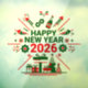 Feiern Sie die Ankunft 2026 mit diesem lebendigen "Happy New Year"-Design mit festlichen Feuerwerken, Party-Hüten, Champagner, Geschenke und Feiertagssjubiläum.