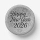 Frohes neues Jahr 2026 Schwarzer & Silberner Glitz Pappteller