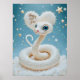 Eine hübsche, blau-mit Augen, schneeweiße Schlange wünscht allen ein frohes neues Jahr.