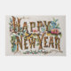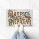 Frohes Neues Jahr in Baumstämmen, Kornen und Blume Fußmatte