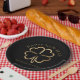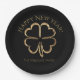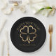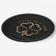 Frohes neues Jahr oder Ihr Text Vierblättriges Kleeblatt Schwarz und Gold, Imitate Gold Clover, elegantes Neujahrs-Party oder Viel Glück Occasion Paper Teller, können Sie ändern oder löschen Sie alle Text