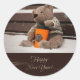 Frohes neues Jahr. Teddy-Bär. Runder Aufkleber