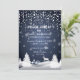 Schöne Happy New Year & Weihnachts Feier für Einladungen & Stationery, Einladungen & Ankündigungen, Urlaub & Saison. Einladung Grafik Design - zwei Seiten (portret vertikal). Winterschnee-Tale Illustration mit Rentier, Tannenbaum, Wald, Landschaft (Vorderseite). Goldene Schneeflocken Schöne Goldene Rahmen Weihnachtsdekoration & Gold Confetti (Rückseite). Vorlage für Ihren Text, einfache Felder, um das Produkt personalisieren. 20XX