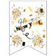 Dieses Banner zeigt die Worte "Happy New Year" in einem einzigartigen/fett gedruckten Schriftart mit schwarzen und goldenen Buchstaben sowie Feuerwerk, Konfetti Formen und Muster in diesem neuen Jahr Thema und Stil. Alle Banner haben einen Außensafe auf der Single-Seite, der aus robustem Kunststoffpolystyrol gefertigt ist, und ein dickes Seil aus Kunststoff hat (16) 5,5" x 8" Frack Fahnen auf einer 6' langen Kette.