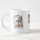 Fröhliche Gefühle Schnappschuss Foto Tasse. Features, 3 gerahmte Fotos mit Scrapbook-Stil-Waschbänder Akzente, zwei marineblaue Template Textzeilen für Ihre Nachricht und Namen mit navy blauen Herz Detail.