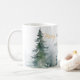 Wasserfarbene Winterbäume in Grüntönen, gepaart mit Schrift und moderner Typografie, personalisieren Kaffeetasse.