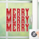 Fügen Sie Ihren Fenstern feierlichen Beifall mit dieser fetten Merry Merry Merry Window Cling. Mit heller, moderner Typografie in Ferienfarben ist es einfach anzuwenden, zu entfernen und wiederzuverwenden. Eine lustige, stilvolle Art Weihnachtsgeist in Zuhause, Büro oder Shop zu verbreiten - kein Band oder Chaos ist nötig!