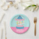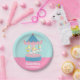 Party liefert PapierTeller mit einem bunten Karussell mit weißen Pferden und gelben der Mähne, die um geht. Süße und niedliche dekorative Stücke für ein fröhliches gehen Runde, Karussell oder themed Geburtstags-Party des Karnevals. Farbpalette der rosa und blauen Farben machen dieses, das höchst für Geburtstagsmädchen entsprochen wird! Fügen Sie Ihre Geburtstagsmitteilung im verfügbaren Raum hinzu.