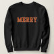 Verbringen Sie einen Feiertagssjubiläum mit diesem Weihnachtspulli mit einem kühnen "MERRY" in Uni varisity style typografie in orange. Dieses gemütliche Ambiente eignet sich ideal für süße Party oder lässige Ansammlungen während der Festsaison.
