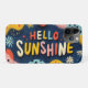 Dieses lebendige und spielerische Bild enthält den Satz "HELLO SUNSHINE" in einem handgezeichnet, mehrfarbigen Schriftart. Die Typografie ist Set vor einem dunkelblauen Hintergrund, der mit einer Vielzahl abstrakter Formen und Muster in leuchtenden Farben gefüllt ist. Das Gesamtdesign hat ein strukturiertes, künstlerisches Ambiente, das kühne Farben und skurrile Doodles kombiniert, um einen fröhlichen und positiven Gruß zu schaffen.