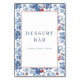 Diese charmante Tischdekoration zeigt ein reizendes Dessertbar-Schild, das von einer eleganten floralen Umrandung in Blautönen und Rot gerahmt wird. Das Design strahlt einen vintagehaften, zauberhaften Charme mit seinen komplizierten botanischen Motiven und spielerischen Typografien aus und lädt die Gäste ein, sich an süßen Leckereien zu erfreuen. Perfekt für Partys oder Zusammenkünfte, verleiht dieses dekorative Stück eine Note von Raffinesse, während es zu einem unterhaltsamen, interaktiven Erlebnis anregt. Seine klassische Farbpalette und die fröhliche Botschaft machen es ideal für jede festliche Gelegenheit.
