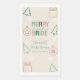 Frohe und Braut! Winterliche Weihnachts-Brautparty mit grünen Bäumen, dekorativen Ornamenten und Geschenkschachteln vor einem neutralen beigen Hintergrund, akzentuiert mit weißen Schneeflocken