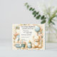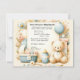 Herzlich willkommen in der Welt mit unserer "Bundle of Joy" Baby Dusche Einladung. Diese exquisite Karte ist mit einem zarten illustrierten Teddybär geschmückt, der bereit ist, Ihre fröhlichen Neuigkeiten auf- und abzuheben! Die in Pastelltönen gehaltene Farbpalette strahlt die Unschuld des neuen Lebens aus, mit einem Korb, der mit Babyessentialen, einer Babyflasche und einer Touch Whimsy gefüllt ist.