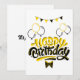 Diese Einladung zeigt die Worte "Happy Birthday" in einem einzigartigen Print-Schriftart mit schwarz-gelben Buchstaben plus umgekehrte Kontur mit Geburtstagsballons, Bannern in diesem Geburtstagsthema und Stil. Auf klassisch gedruckt, rund um die 17,5 pt dicke Papiere mit unbeschichteter Matte, mit einer Muschelstruktur, die in den USA hergestellt und mit "It's A Party" bedruckt wird.