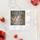 Fügen Sie Ihrem Hochzeitsempfang eine elegante Touch hinzu, die Party-Dekoration mit dem Foto "Cheers to Happily Ever After" Papierservietten. Das Bild und alle Texte auf dieser Vorlage sind einfach zu personalisieren für eine Hochzeit, Verlobung, Pärchen-Brautparty, Jubiläum oder andere Anlässe. Das moderne, minimalistisch-weiße Typografie-Design zeichnet sich durch die Namen der Ehepaare und das Hochzeitsdatum aus, das mit einem Foto Ihrer Wahl überlagert wird. Diese stilvollen und einzigartigen Cocktail-Servietten ergänzen ein besonderes Fest. Herzlichen Glückwunsch an die Braut und Bräutigam!