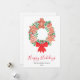 Diese Weihnachtskarte ist mit einem Wasserfarben-Kranz aus Keksen, festlicher Grünpflanze und Beeren dekoriert.