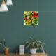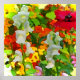 Dieses bunte Poster ist ein Fest für die Augen! Es verfügt über einen informellen Garten mit rosa-weißen Schnappdragons, Nuria in Orange, Gelb und Rot und einem roten Mohn. Das Originalfoto wurde digital verbessert, um ein abstraktes impressionistisches Muster zu erzeugen.