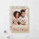 Süße Fotokarte. Fröhliche Grüße unten auf dieser Schönheit. Braun-weißes Gingham-Muster im Hintergrund. Auf der Rückseite finden Sie einen warmen Text, den Sie nach Belieben anpassen oder ändern können. Fügen Sie Ihren Namen und das aktuelle Jahr hinzu. Jeder würde sich freuen, eine so schöne Weihnachtskarte zu erhalten.