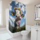 Ein spielerisches, nahes Bild einer Kuh, stehend auf einer sonnigen Wiese, geschmückt mit einer blühenden Krone aus Molkereien und Wildblumen. Die Kuh hält sich die Zunge heraus und verleiht der Szene eine Touch Spaß und Charme. Der hellblaue Himmel und weiche Wolken im Hintergrund verstärken das fröhliche und skurrile Erscheinungsbild des Bildes.