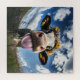 Ein spielerisches, nahes Bild einer Kuh, stehend auf einer sonnigen Wiese, geschmückt mit einer blühenden Krone aus Molkereien und Wildblumen. Die Kuh hält sich die Zunge heraus und verleiht der Szene eine Touch Spaß und Charme. Der hellblaue Himmel und weiche Wolken im Hintergrund verstärken das fröhliche und skurrile Erscheinungsbild des Bildes.