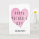 Eine hübsche Tageskarte für Mama mit einem rosa Wasserfarbenherz vorne. Sie können die Vorderseite leicht mit dem Namen des Kindes personalisieren, zusammen mit Mama, Mutter, etc. Inside liest eine süße Nachricht für Mama, die Sie auch personalisieren können. Auf der Rückseite befindet sich das gleiche hübsche rosa Herz, das man auch bei woll personalisieren kann. Das macht einen tollen Muttertagsgebet.