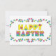 Fröhliche Ostern. Nette, niedliche Ostern-Party Einladungen. Das glückliche Wort ist in einem hellen heitren Gelb, und das Wort Ostern ist in einem Regenbogen der Farbe. Beide werden mit Blumen besprüht. Kundengerecht, können Sie den Text in unserer bedienungsfreundlichen Schablone personifizieren. Sie können die Hintergrundfarbe ändern, wenn Sie möchten, gehen gerade besonders anzufertigen. Wollen Sie dieses oder einen ähnlichen Entwurf auf einem anderen Einzelteil? Besichtigen Sie meinen Sensato Speicher.