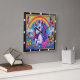 Fröhliche Rainbow Unicorn-Blume Quadratische Wanduhr