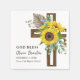 Fröhliche, elegante Sonnenblumen, Eukalyptus und Pampasgras, die auf einem dunklen Holzkreuz ausgestellt sind, schaffen dieses Blumendesign für Ihre Taufnapkins. Die große Größe des Kreuzes schafft ein aktualisiertes Aussehen. "Gott segne" steht über dem Namen. Das Taufdatum und der Ort der Taufe werden auch auf der Serviette angezeigt. Diese Serviette ist perfekt für Spätsommer oder Herbsttaufe.