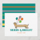 Mit dieser spielerischen "Merry & Bright" Weihnachtskarte mit einer hübschen Dackel, die einen orangefarbenen Schal trägt und farbenfrohe Ballons hält, verbringen Sie Ihren Urlaub. Das fröhliche Design ist Set auf einem knusprigen, weißen Hintergrund mit fett aquamarinen und orangefarbenen Typografien, und die Rückseite mit farbenfrohen Streifen für einen modernen, festlichen Look. Personalisieren Sie mit Ihrem Familiennamen und Jahr für den perfekten Gruß, um an Hunde Liebhaber, Haustierbesitzer und Freunde zu senden.