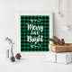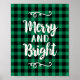 Merry und Bright Urlaub Wand Art Print / Poster bietet ein gebürstetes Skript typografisches Design mit Scroll Akzente und rustikale grün und schwarz Büffel kariert / Karo gemusterten Hintergrund.