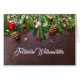 Feiertagsgrußkarte mit weihnachtlicher Deko vor schönem Holzhintergrund