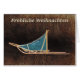 Auf dem Weg am Heiligen Abend. Ein Hundeschlitten mit einer aquamarinen Schlitte überlagert auf einer digitalen Darstellung von Rentierfellen. Deutscher Text mit dem Text "Fröhliche Weihnachten" erscheint und Sie können die Karte personalisieren, indem Sie ein wenig Text auf dem Schlitten hinzufügen.