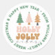Fröhliche Weihnachten & Neujahr Retro grüne Typogr Runder Aufkleber