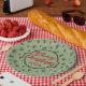 Fröhliche Weihnachtsgrün Vintages Flair, friedliche Waldweidenweihnachtsbaummuster Koordinieren Sie Ihre Feier mit einem individuellen Geschirr mit einem friedlichen Waldlandfest-Designs und anderen roten und moosgrünen Produkten in der Kollektion . Entworfen von @rodicadraws. Gute Ferien!