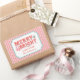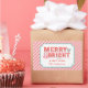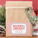 Dieser Weihnachtsaufkleber zeichnet sich durch ein fröhliches Design aus, in dem steht: "Wünschen Sie sich eine fröhliche und helle Urlaubssaison." Sie können mit Ihrem Namen ganz unten personalisieren. Auf der Rückseite befindet sich ein weiteres koordinierendes rosa und rotes diagonales Stripmuster.